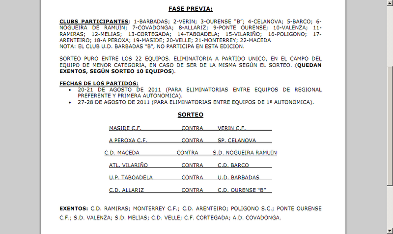 SORTEO COPA DIPUTACIÓN PARA EQUIPOS DE PRIMERA Y PREFERENTE (OURENSE)